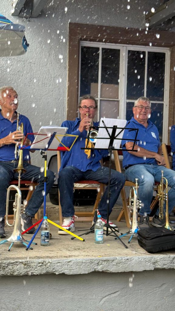 Die Schleusen haben sich geöffnet und der Himmel ließ seine ganze Pracht auf uns herab. Glücklicherweise sind wir spritzwasser- und sogar wetterfest und haben danach gleich unser Programm weitergeführt. Wir erinnern uns gerne noch an die Pinacher Wasserspiele zurück.