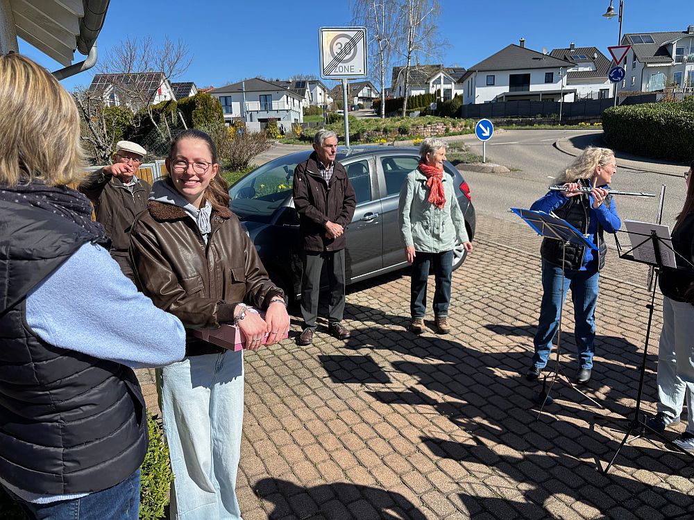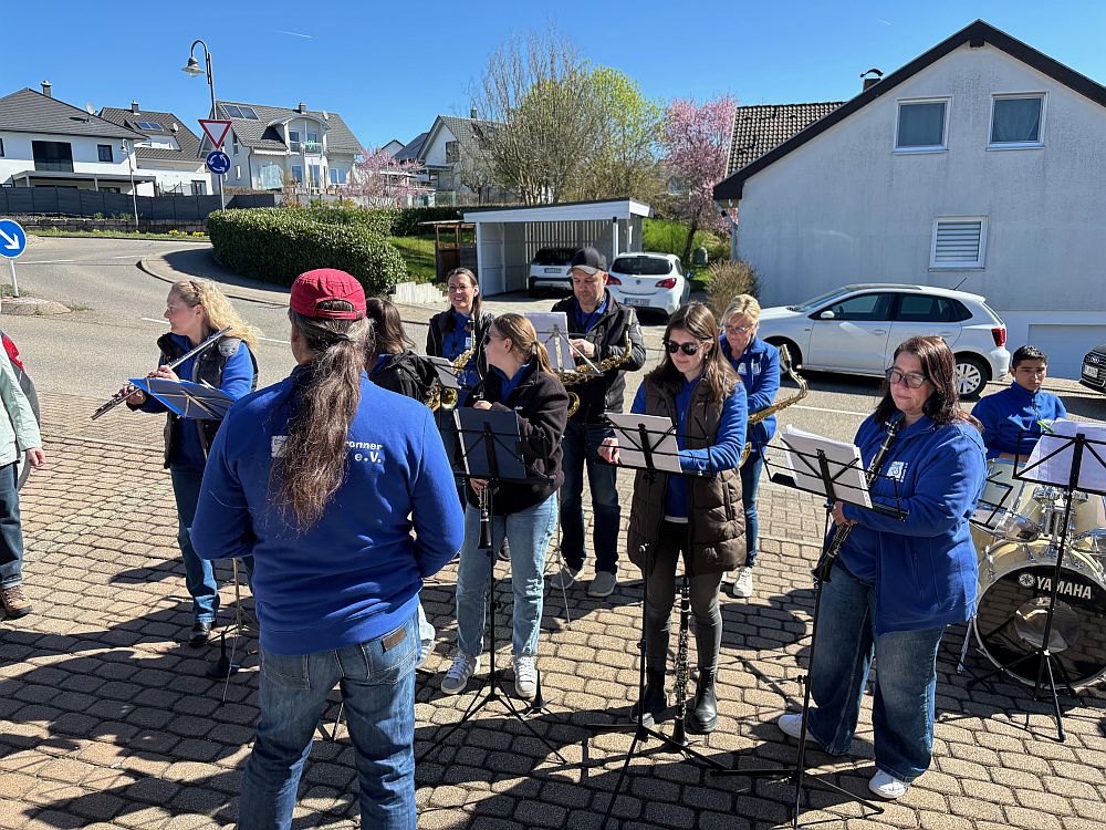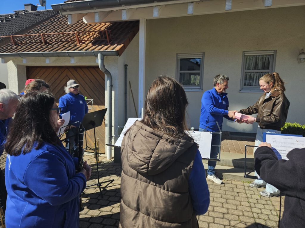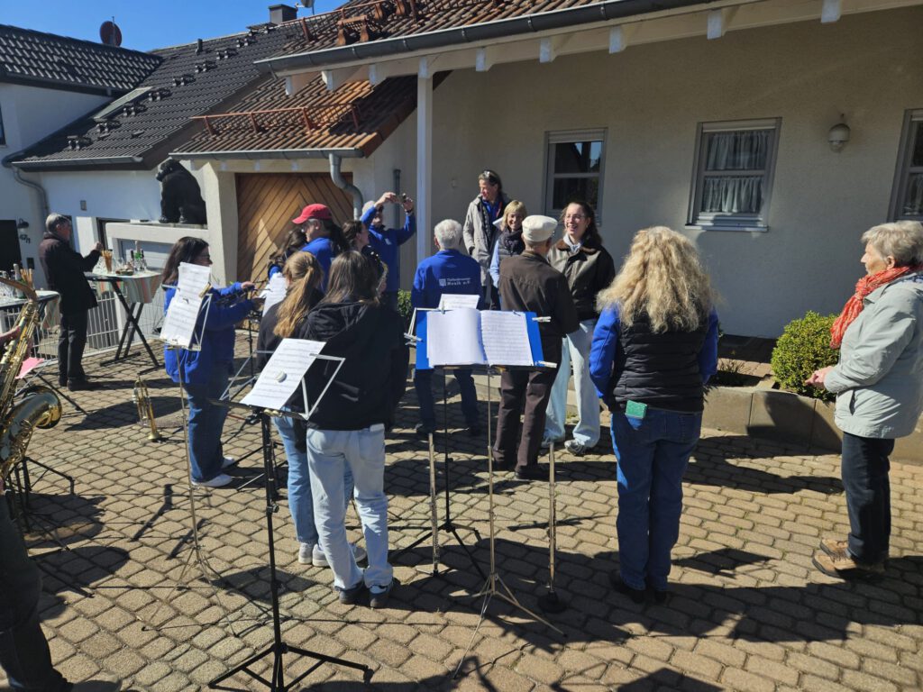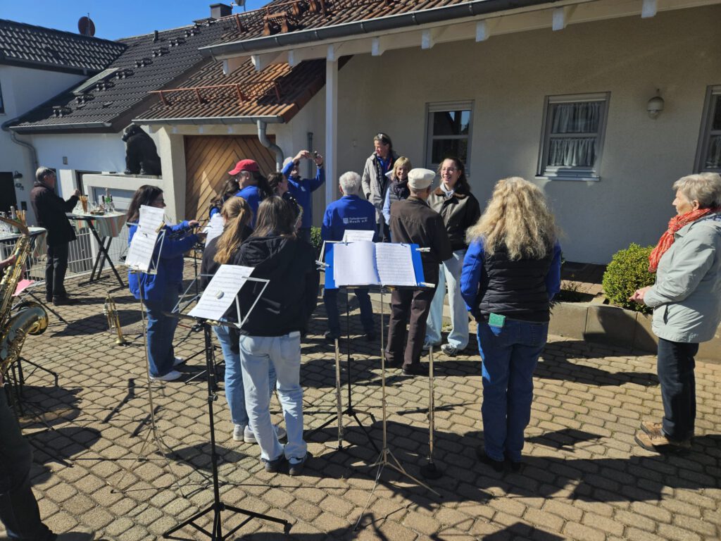 Am Sonntag, den 06.04. konnten wir eine Kollegin zu ihrem 18. Geburtstag überraschen und ein Ständchen spielen. Bei knackigen Temperaturen und viel Sonnenschein gelang uns in aller Heimlichkeit die Überraschung.