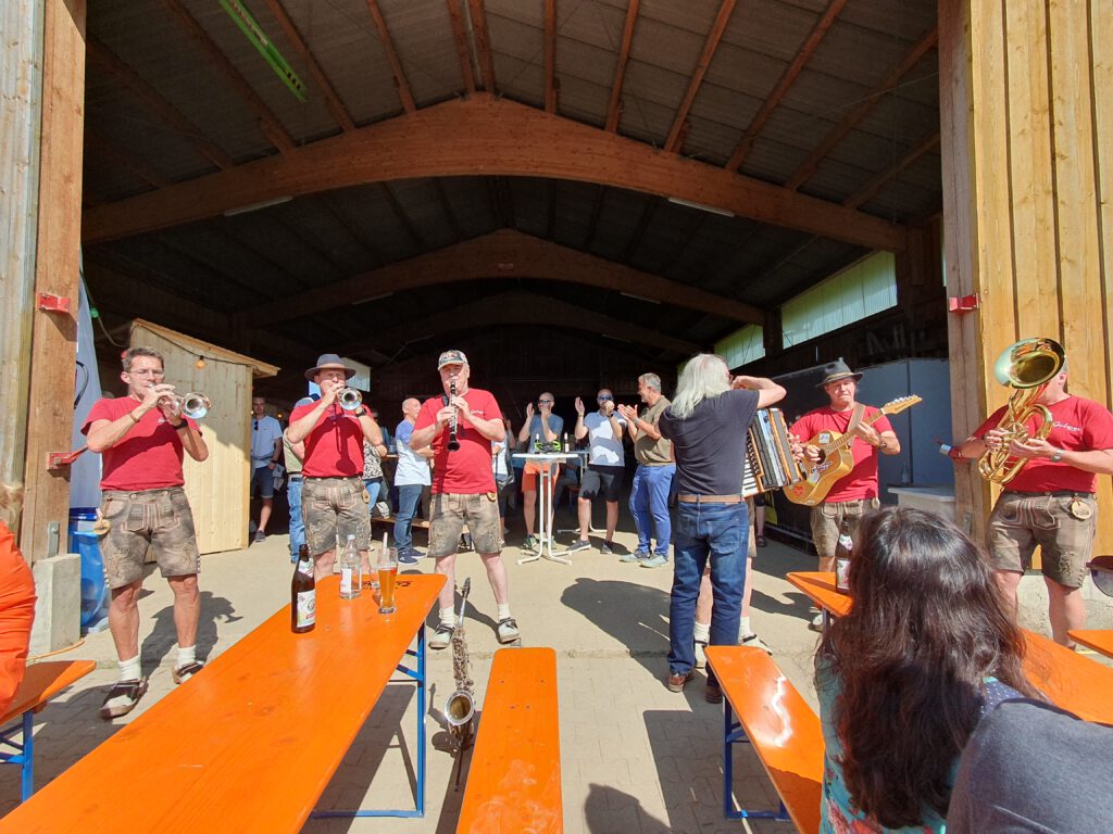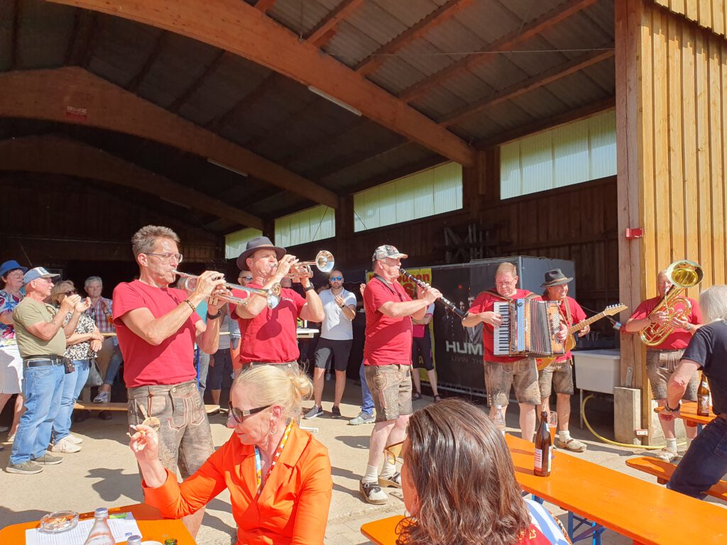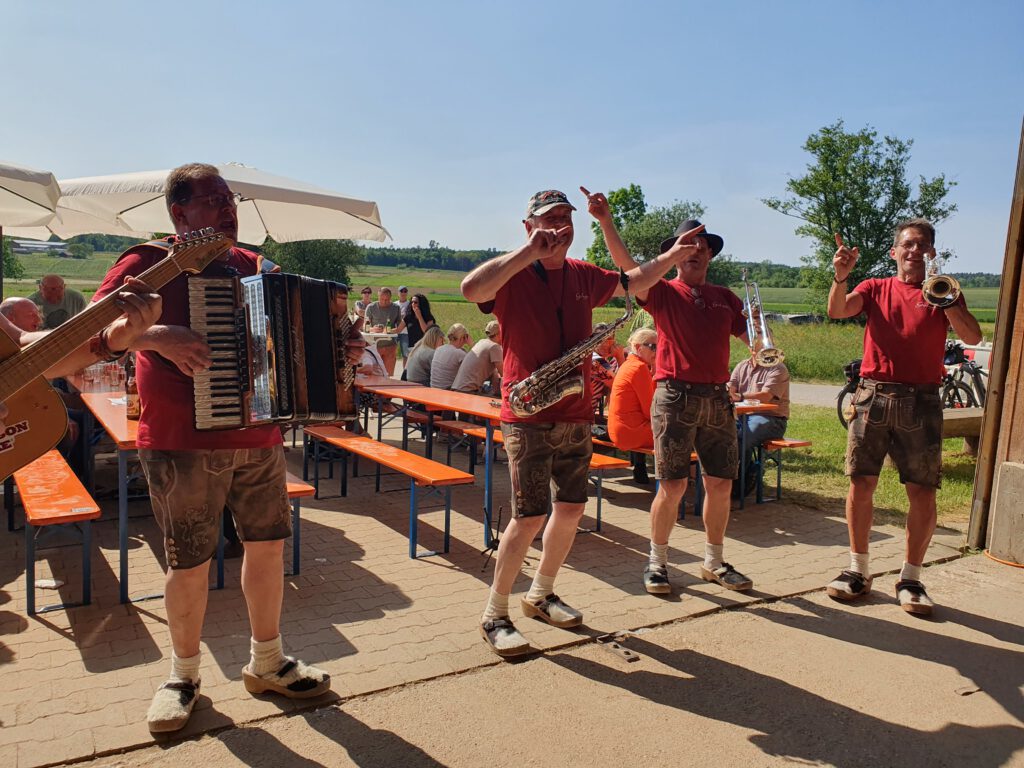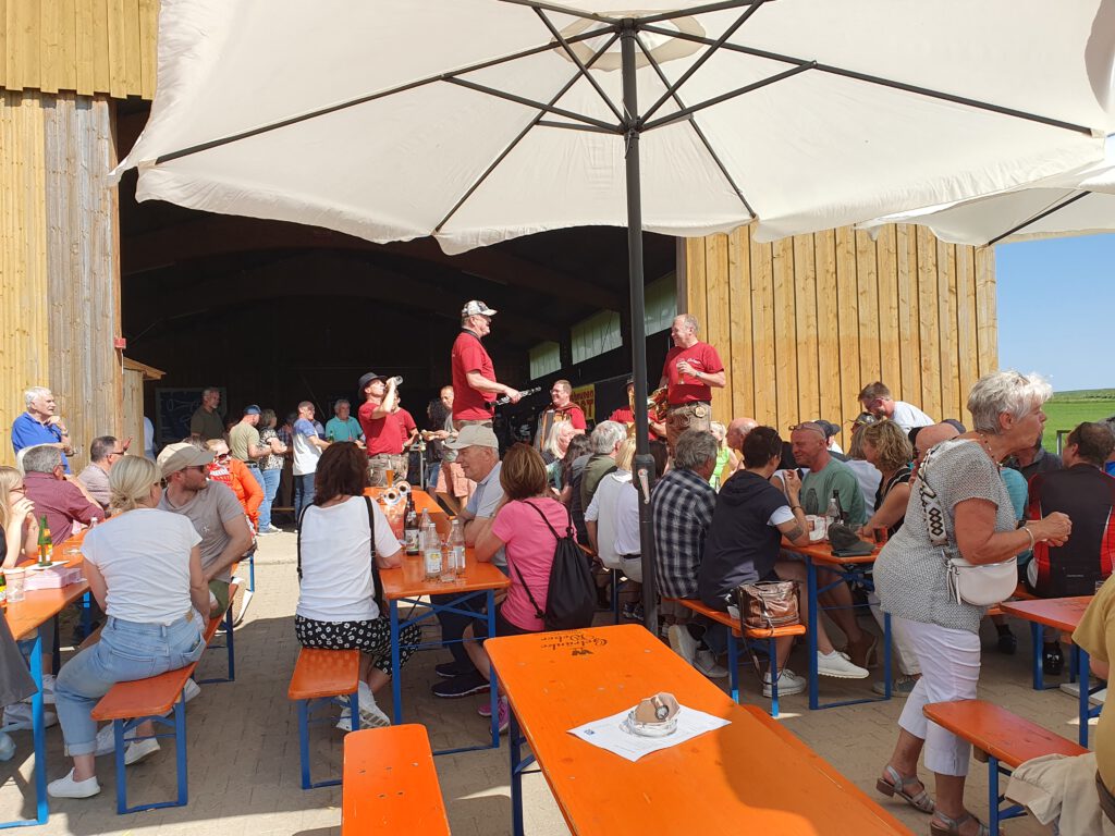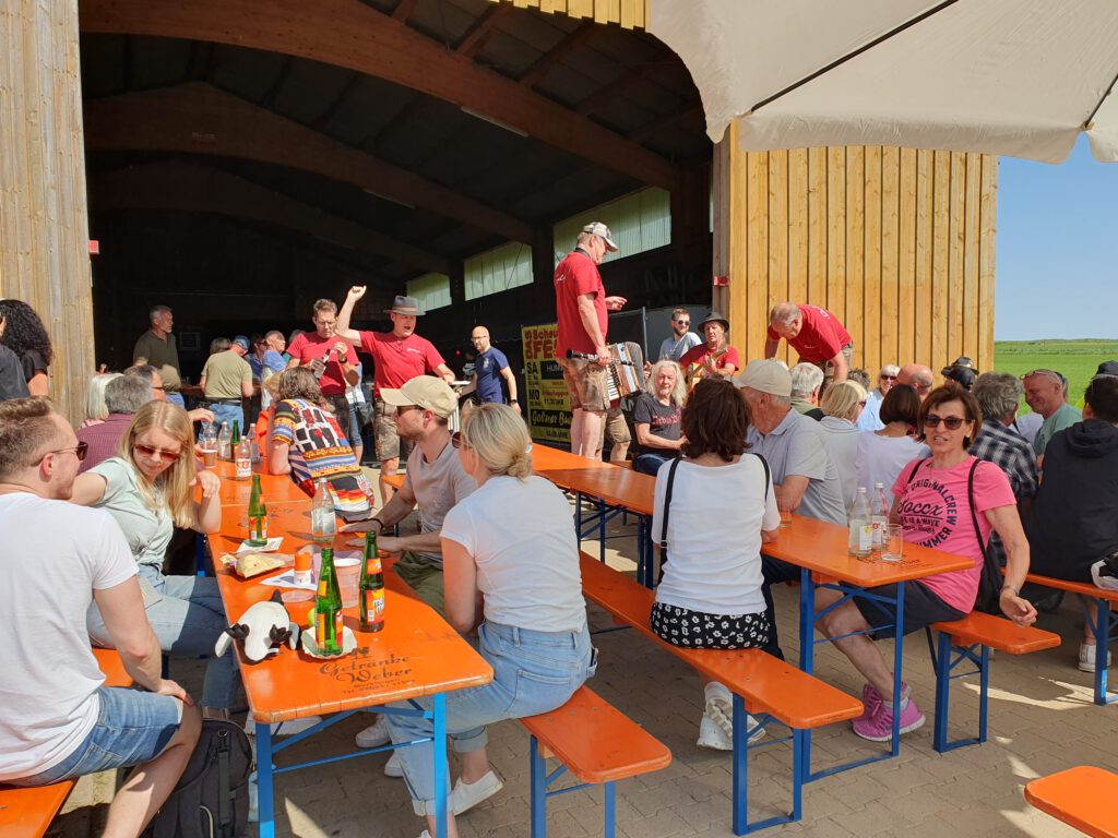 Den Pfingstsonntag, unser 25-jähriges Jubiläum haben wir dann am Morgen mit unserem Musikprogramm für Jung und jung Gebliebene gestartet. Zu Beginn unseres Auftritts war das Publikum noch überschaubar, was sich jedoch schnell geändert hat. Zum Ende unseres Programms war die Scheune sehr gut gefüllt und die Stimmung super.