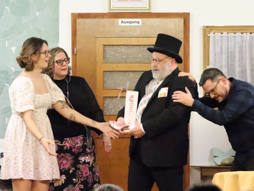 Die Theatergruppe der Tiefenbronner Musik hat uns wieder an dem Ergebnis intensiver Vorbereitungen und Proben teilhaben lassen und ihr neues Stück aufgeführt. Wir können uns glücklich schätzen, auf eine Truppe, die ein Garant für Kurzweil und Frohsinn ist, zählen zu dürfen.